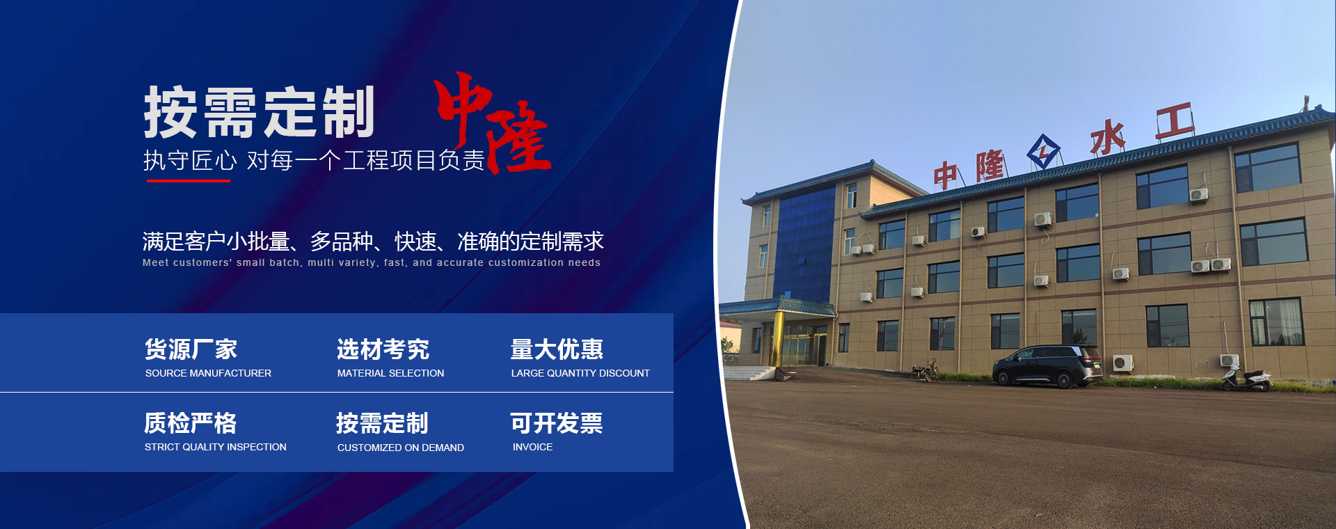 走進(jìn)中隆邢臺市中隆水工設(shè)備有限公司位于新河縣九龍工業(yè)園區(qū)占地面積20000平方米。北鄰北環(huán)路、西鄰西環(huán)路,交通便利。 ···